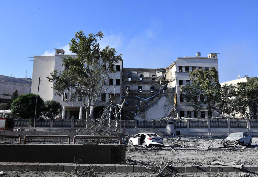 这是7月16日在叙利亚首都大马士革拍摄的在以色列空袭中受损的建筑。新华社发(阿马尔·萨法尔贾拉尼摄)