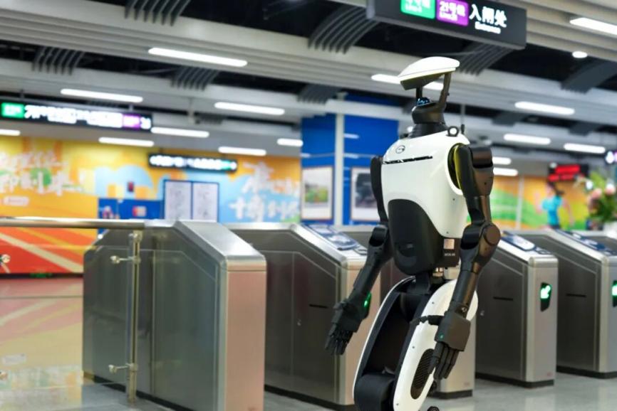 除智慧接驳服务外,广汽还在广州赛区重点地铁站内投入第四代具身智能人形机器人GoMate Mini,提供安保巡逻、移动巡检及应急处置服务。