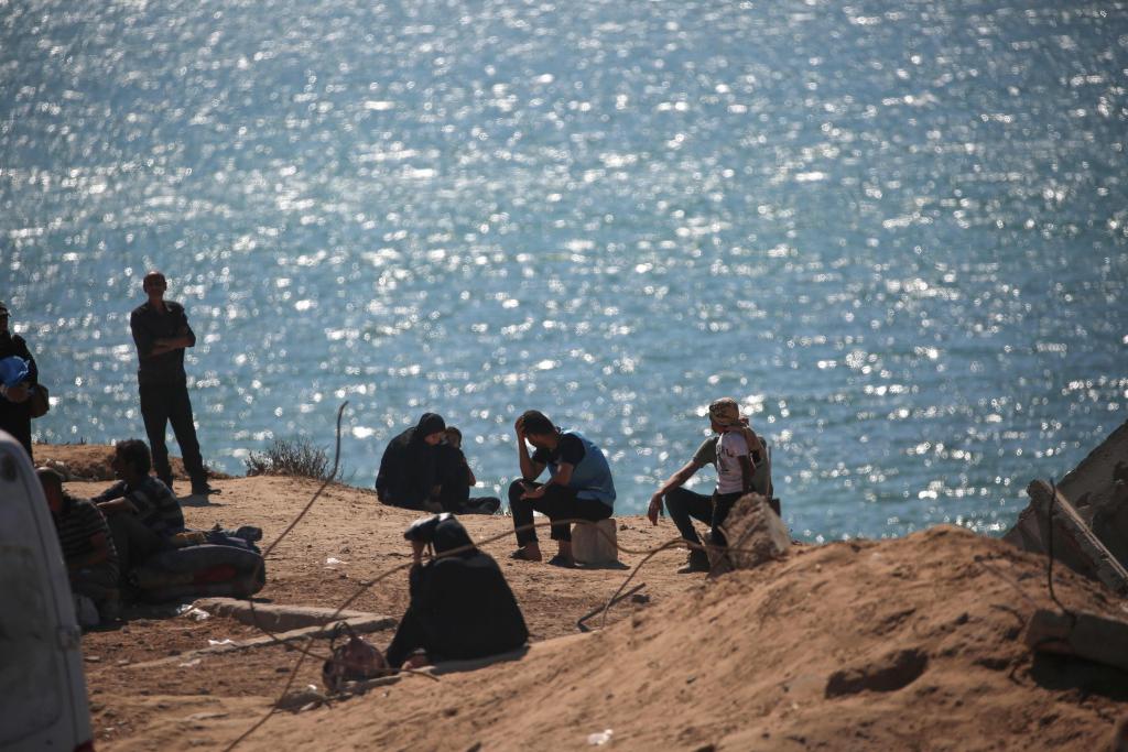 9月14日,在加沙地带中部,流离失所的巴勒斯坦人在向南撤离的途中休息。新华社/法新