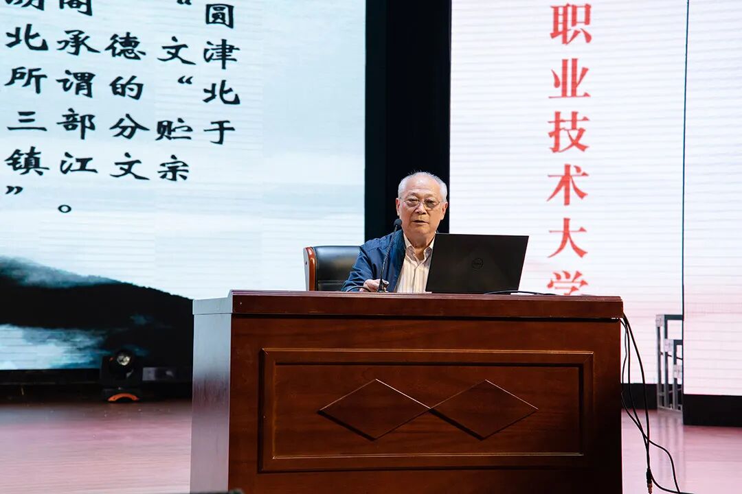 在报告会现场,刘士尧把“《文澄阁四库全书》书香校园示范基地”0001号牌匾隆重授予洛阳科技职业学院。