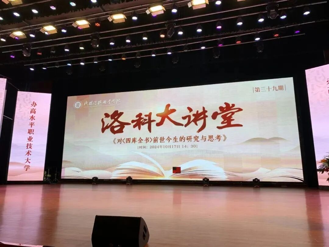 首先,刘士尧主任在洛科院新民大礼堂给大家作了一场精彩的演讲报告,题目是《对《《四库全书》前世今生的研究与思考》,使聆听者对中华民族灿烂文化之一的《四库全书》有了全面系统的了解。报告共分五个部分:1、《四库全书》的成书过程和坎坷经历。2、《四库全书》在中华文明史上的重要地位。3、恰逢盛世230年后《四库全书》再次缮錄。4、为什么要用工楷抄写《文澄阁四库全书》。5、着力加快《文澄阁四库全书》古籍及资源的转化利用。