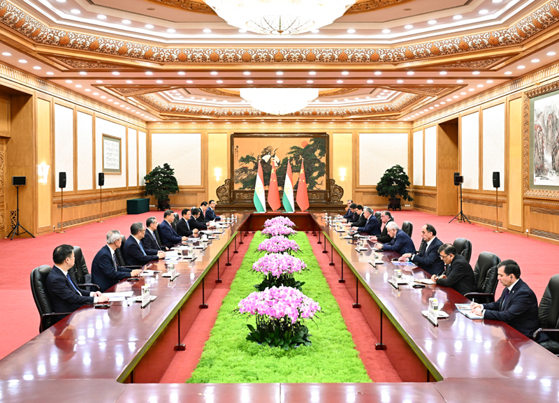 习近平指出,在我同拉赫蒙总统战略引领下,中塔合作不断取得新成果。中国已成为塔吉克斯坦第一大贸易伙伴,一系列合作项目取得新进展。作为全面战略合作伙伴,中方愿同塔方携手同心,构建中塔命运共同体。