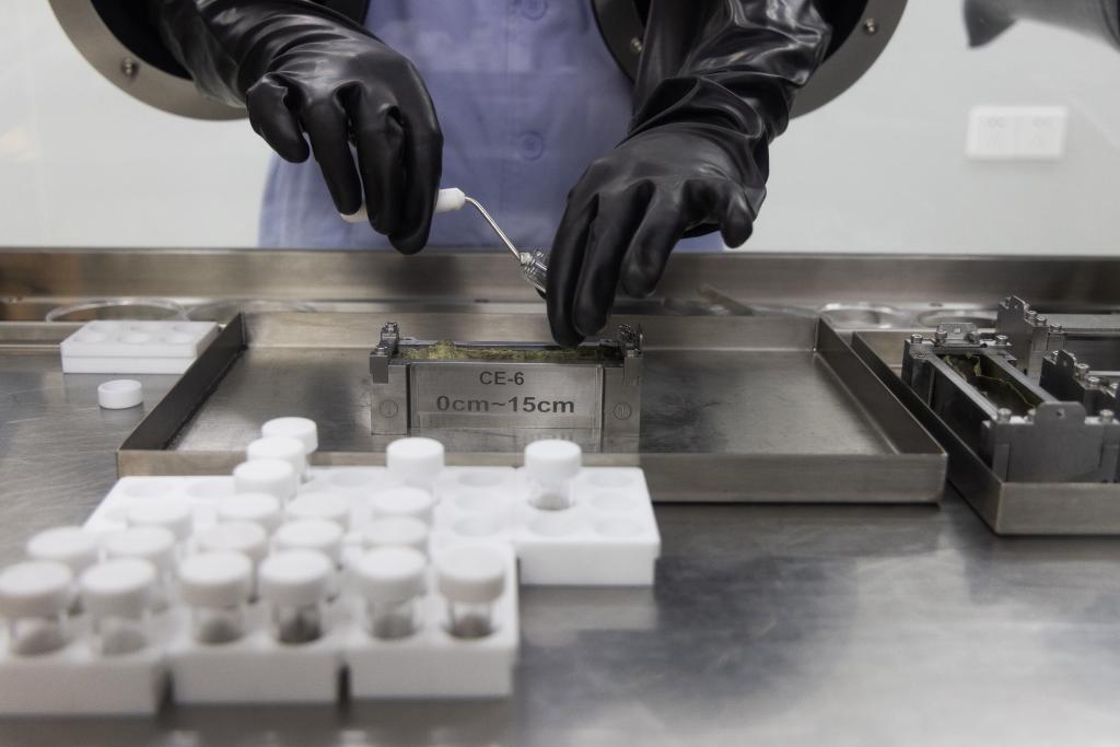 2024Äê9ÔÂ24ÈÕ£¬¿ÆÑÐÈËÔ±ÔÚÔÂÇòÑùƷʵÑéÊҵĽâ·â²Ù×÷̨ÉÏ´¦ÀíæÏ¶ðÁùºÅÔÂÇòÑùÆ·¡£ лªÉç¼ÇÕß ½ðÁ¢Íú Éã