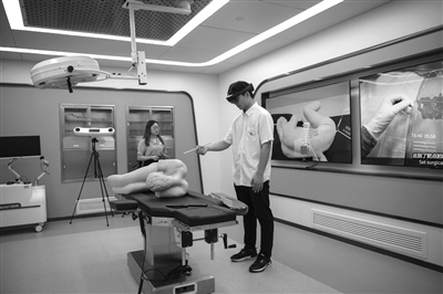 在位于安徽省芜湖市的“中国视谷”,工作人员在模拟手术室里演示数字化手术辅助平台。新华社发(肖本祥 摄)