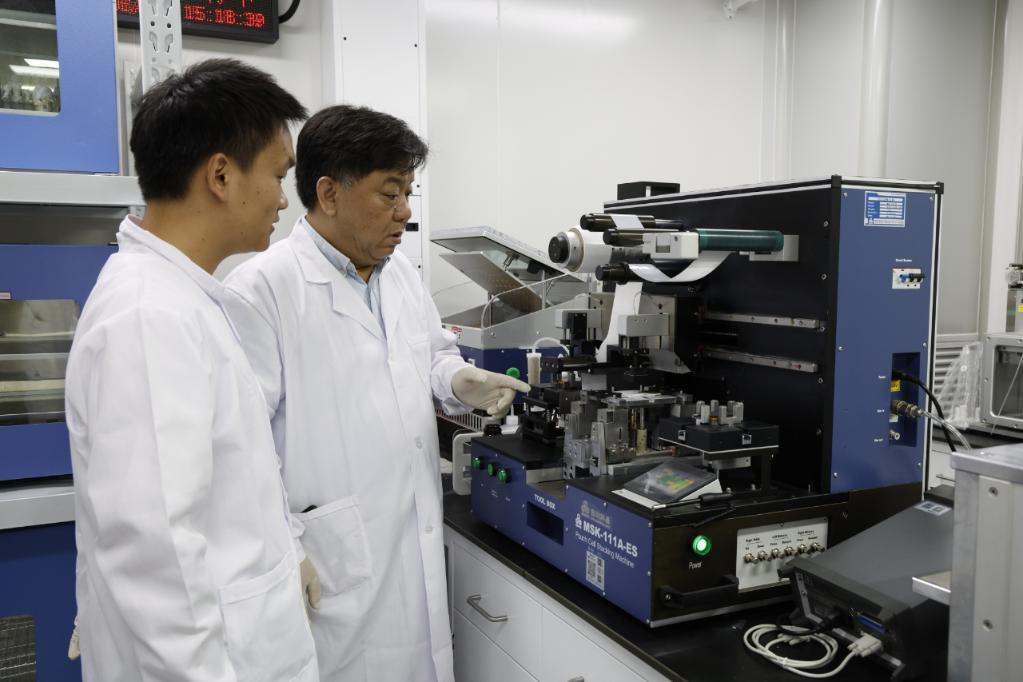 科研团队正在研究电池叠片技术。(受访者供图)