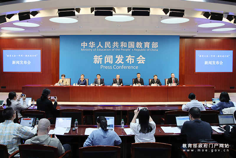 教育部召开新闻发布会介绍教育部等七部门《关于加强中小学科技教育的意见》有关情况。(中国教育报记者 张劲松/摄)