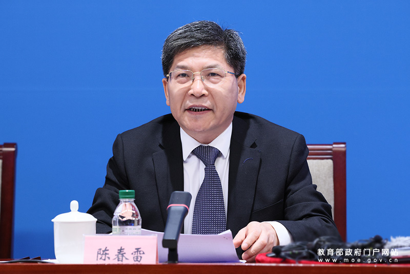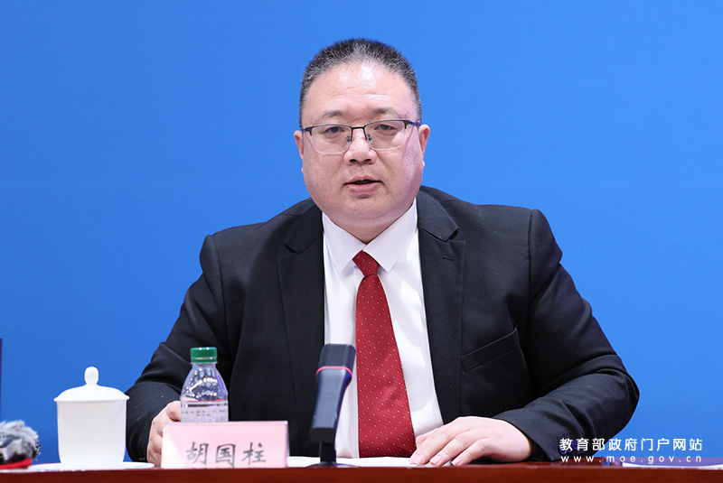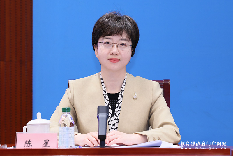 教育部办公厅副主任、新闻办主任陈星主持发布会。(中国教育报记者 张劲松/摄)