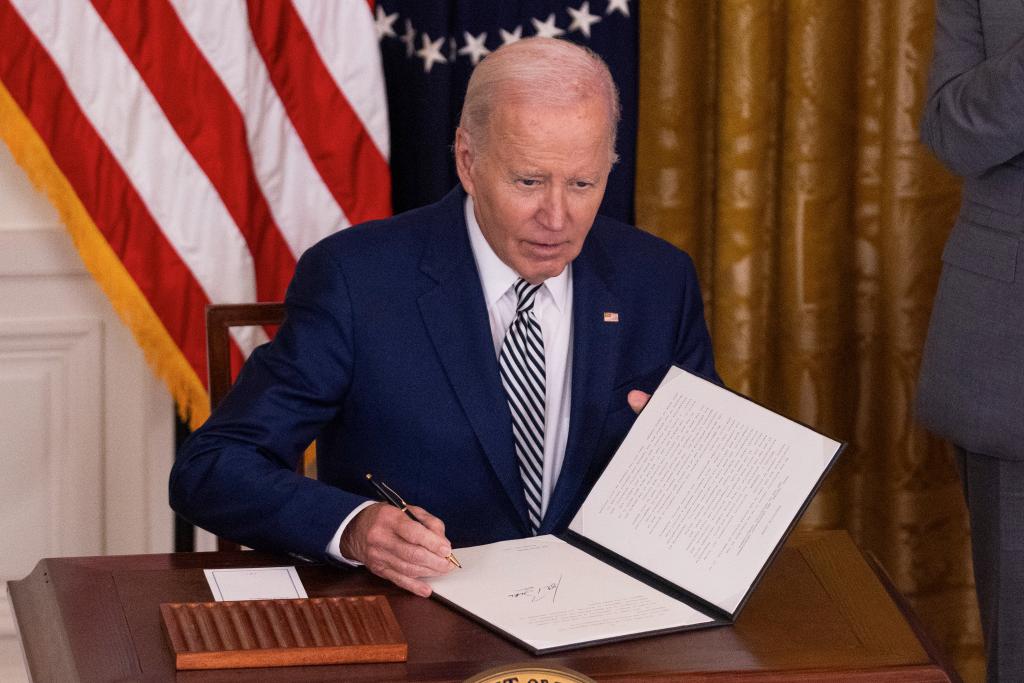 2023年10月30日,时任美国总统拜登在白宫签署人工智能监管行政令。新华社发(亚伦摄)