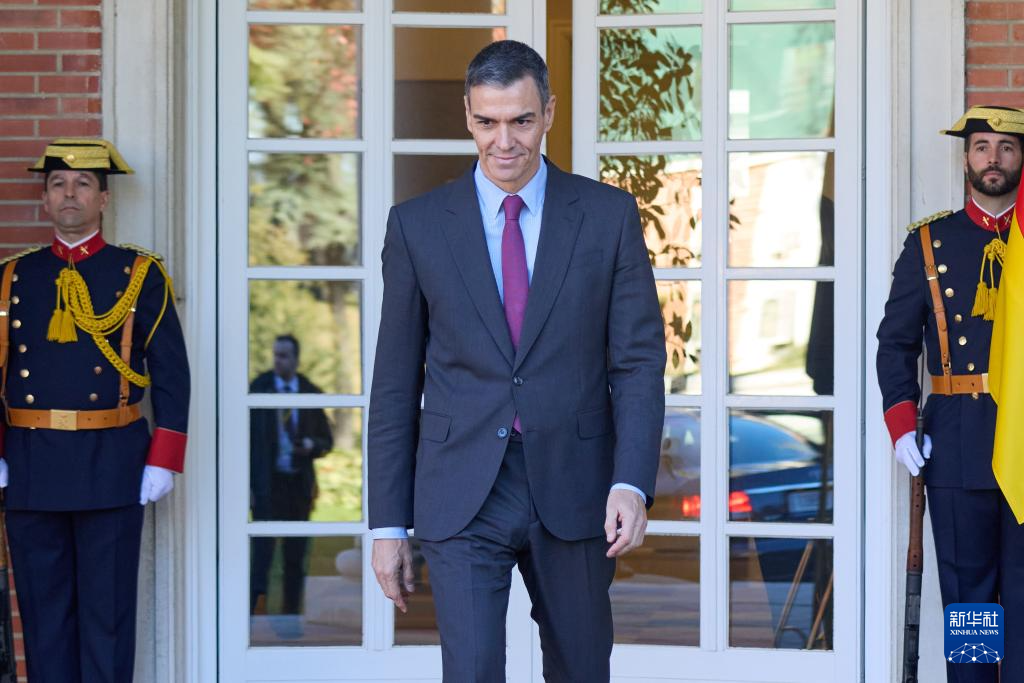 11月27日,在西班牙马德里,西班牙首相桑切斯走出蒙克洛亚宫。(资料照片)新华社记者 孟鼎博 摄