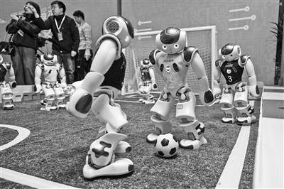 2月24日,人形机器人在现场表演踢足球。湖北自主研制的多款eVTOL(电动垂直起降飞行器)航空器以及人形机器人在“全省加快建成中部地区崛起的重要战略支点推进大会”上亮相,集中呈现湖北低空经济、人工智能等产业的最新研发成果。