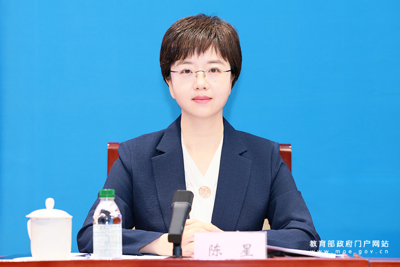 教育部办公厅副主任、新闻办主任陈星主持发布会。(中国教育报记者 张劲松/摄)