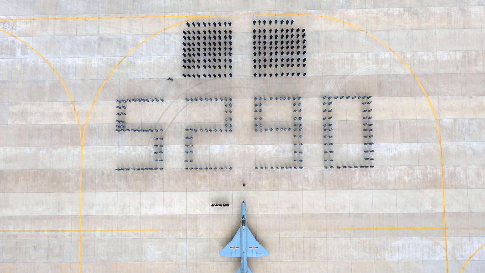 停飞仪式上,官兵们摆成5290的数字向王文常致敬(5月25日摄)。 新华社发(皇勇 摄)