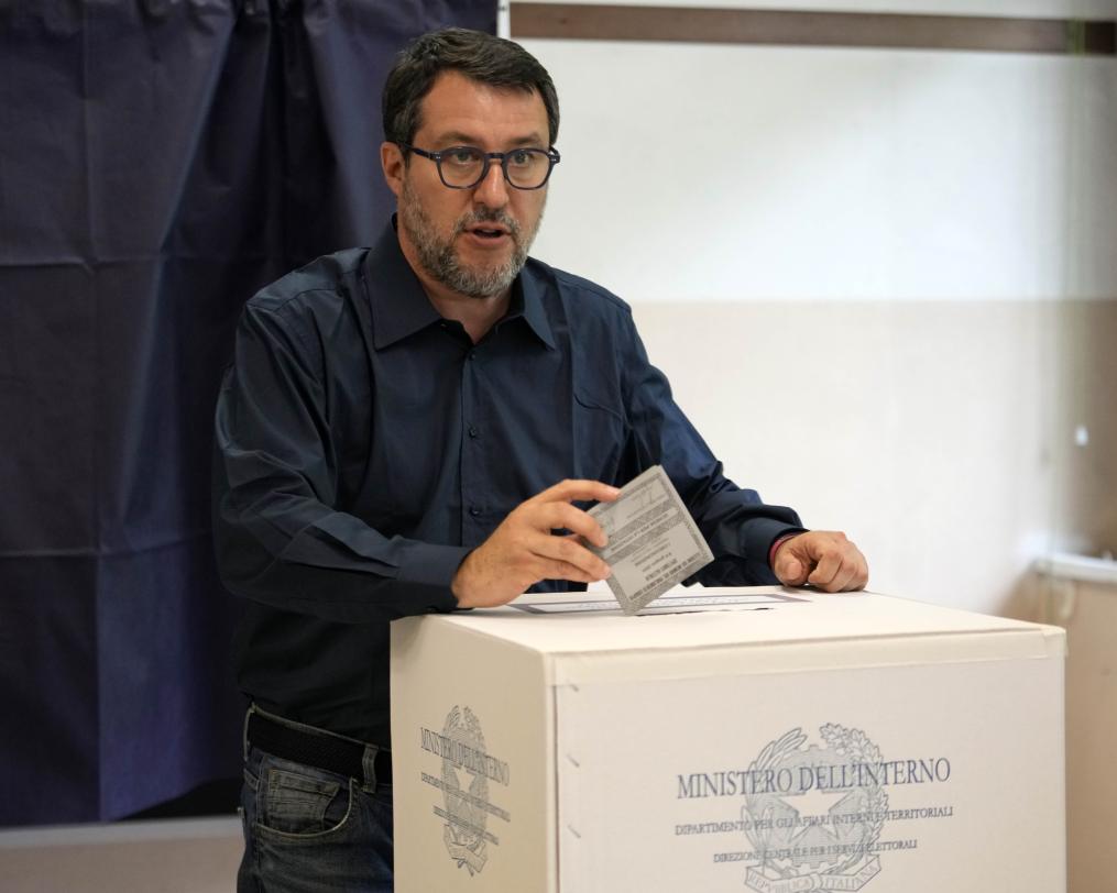 2024年6月8日,意大利北方联盟领导人萨尔维尼在米兰一处投票站投票。新华社发